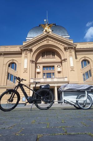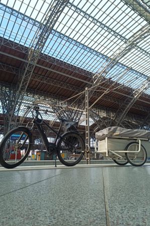Train ride with e-bike and caravan trailer