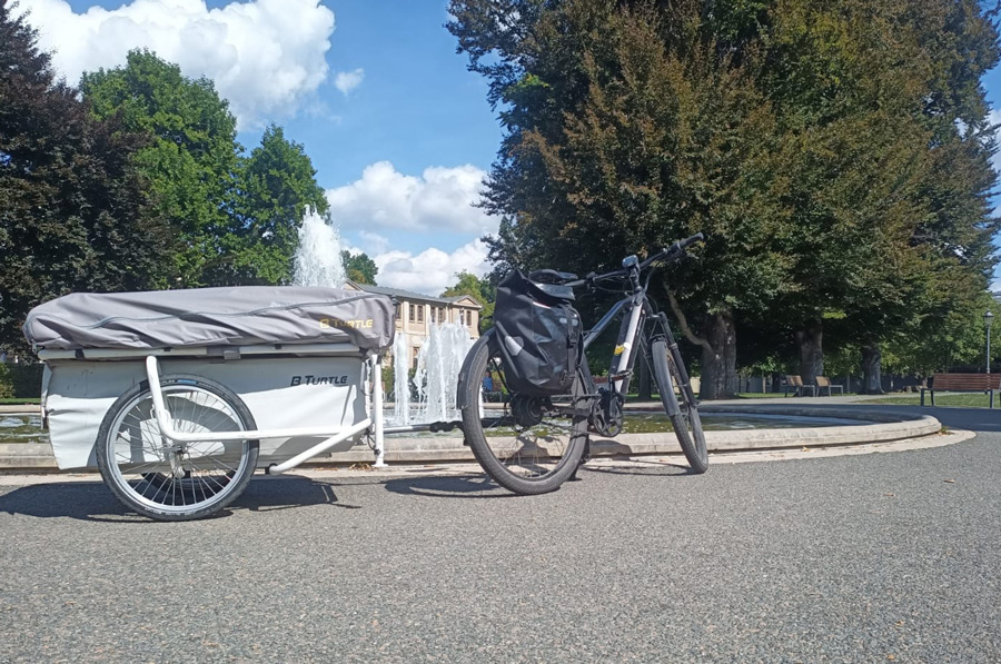 In 2022, Jörg again invited to the meeting of the bicycle caravan fans in Wunschendorf near Gera. Since we ourselves were busy at the time of the meeting at the Caravan Salon in Düsseldorf, we asked our friend Moritz Hillebrand (Mobee Osnabrück) to take part in the event, not without the background of further experience in terms of traveling by e-bike and caravan trailer by train to collect.