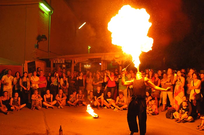 When the time was 22:00, the Acoustic Stage hosted to quite a burning performance. Fabio Esposito, whom we later learnt that he is a man of many talents, was in front of us with an acrobatics performance called “Fire Show”.