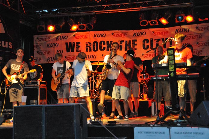We were waiting for the Rap-Reggae-Ska band “Mightly Mammut Movement”, who already started to perform on the Kuki New-Stage. 11 young musicians of the band presented quite an energetic show with messages. Not only us, but also the crowd that gathered around found it worth to listen and nobody left the downstage. Accompanied by various instruments, Mightly Mammut Movement presented an effusive concert. We think that they set a good example to the Rap and Hip-Hop stream in Turkey.