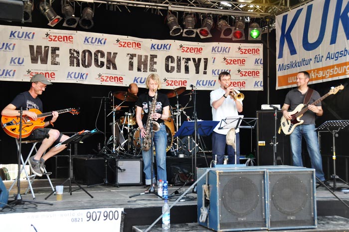 Today, the band “Let’s Drum” opened the musical part of the festival. In the city of Augsburg, the band gives lessons to individuals and groups in a drums and percussion instruments school. Throughout the festival, we had a chance to watch the performances of Djembe (skin-covered goblet drum played with bare hands in West Africa), various styles of Cajon (Peru’s box-shaped percussion instrument with six sides) and Congas (tall and narrow, single-headed African drum).