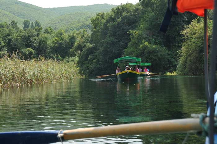 What we could not do during our first visit to the Sveti Naum Monastery, we wanted to catch up on now together with our Swiss friend Sven: a boat trip on the spring lake near the monastery.