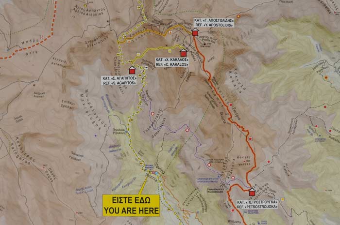 Dark storm clouds appeared and suddenly there was doubt as to the whether if we would probably be able to reach our afternoon target. But we just wanted to reach Refuge S. Agapitos, about 1,100 meters of height difference, which should mean about 3.5 hours of hiking.