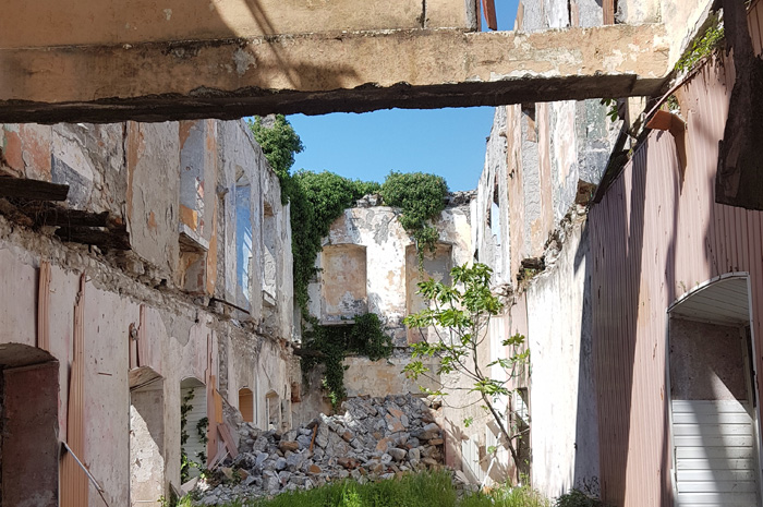 A little distance further the scenery is completely changing, here a nearly completely decayed building, which is hardly still remediable.