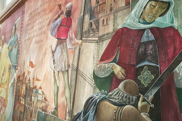 Georg Kastrioti, later on called Skanderbeg, came from the nobility of Kastrioti in the rank of a prince, who was trained as a military commander. From 1423 to 1443 he served the Ottoman Empire, from 1443 to 1447 the Republic of Venice and from 1451 until his death the Kingdom of Naples. Important epochs of this story are illustrated in large pictures.