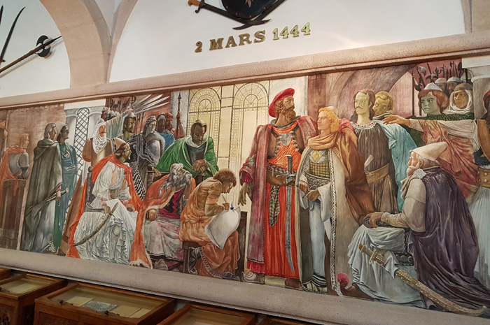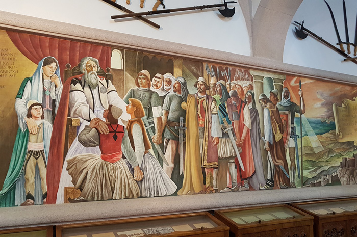 Right at the entrance to the museum: on March 1, 1444, Albanian and Montenegrin nobles assembled on the initiative of the "Ottoman conqueror Skanderbeg" in St. Nicholas Church in the then Venice-owned Alessio (Lezha). The representative of Venice was also present. The "League of Principalities of Albania" (Lidhja e Principatave të Arbërisë) was launched, which unanimously decided to surrender Georg to the command of the troops.