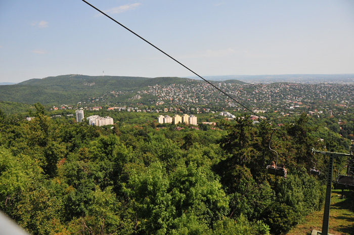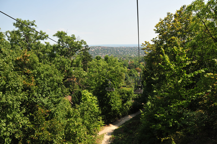 After a few initial talks about possible activities in and around Budapest, András & Márta, the owners of the Zugligeti Niche Kemping, recommended the ride up to the Jánosberg by chairlift as the first view of Budapest could be open a first general overview.