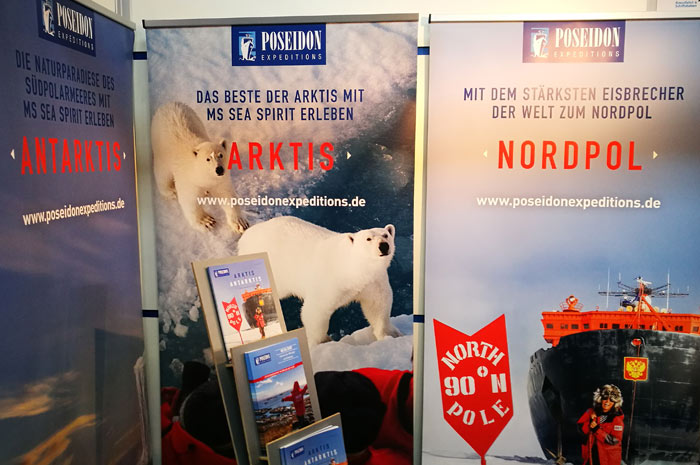 In Hall 10, real travel exotics were offered, which, as shown in the picture, wants to bring the world to the North Pole, here aboard the world's largest icebreaker, the Poseidon. Pure Adventure.