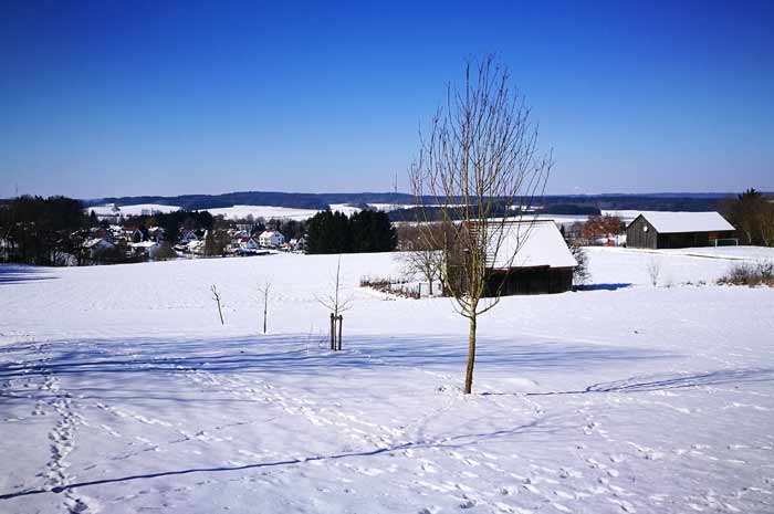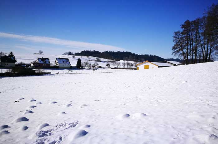 Although it was a few degrees below zero with sometimes icy gusts of wind, but the sun tempted and movement never hurts - this mentioned above, we wanted to take a short walk through the Western Woods between Diedorf and Rommelsried with George.