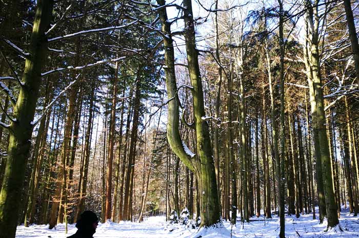 Of course, in February it is not possible to cross large parts of the Western Woods by bike, too much snow is currently on the forest roads. Frozen, the snow crackles and breaks under the shoes, it is a beautiful landscape that surrounds us. As Georg said so beautifully: cold and nature clears your mind!
