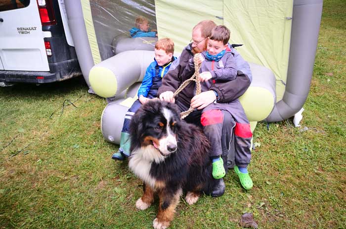 Sitting on straw bales, camping chairs and armchairs which were brought together, again and again, changing roof tent nomads together with their children appeared, talking to each other, exchange ideas and enjoy the rain-free hours at the blogger camp.