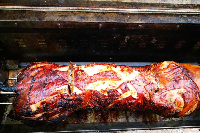 For the late afternoon, a suckling pig is already prepared on the rotisserie, which at least for spread quite pleasant scents non-vegetarians and vegans.