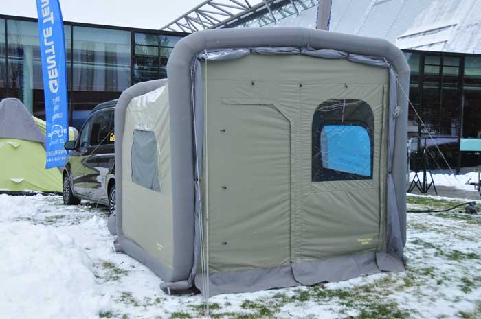 Thus, the new camping bus was provided with a heater that distributed their comforting warmth into the awning, of course, inflatable. An additional gas heating ensures even warmth in the tent.