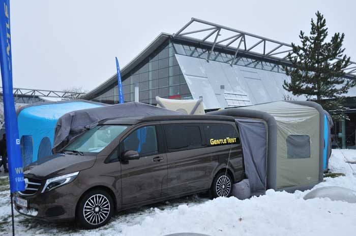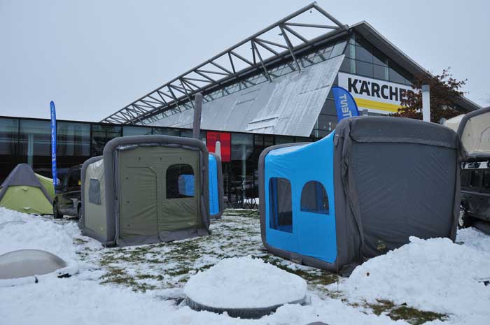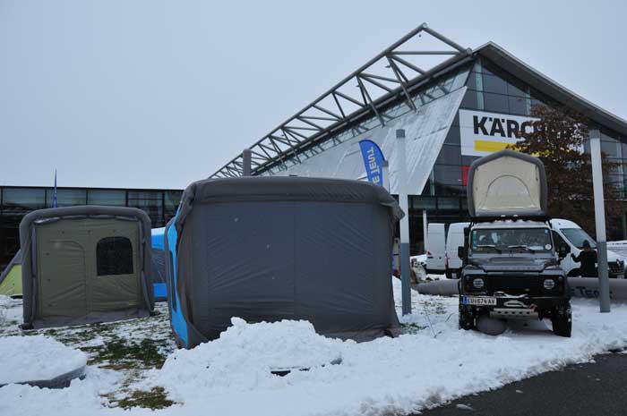 Challenges are appealing - this is how the inclined visitor to CMT Stuttgart may initially think when he looks at the outdoor exhibitions of some tent manufacturers, who present themselves in the outdoor area despite the weather conditions with snow and rain.
