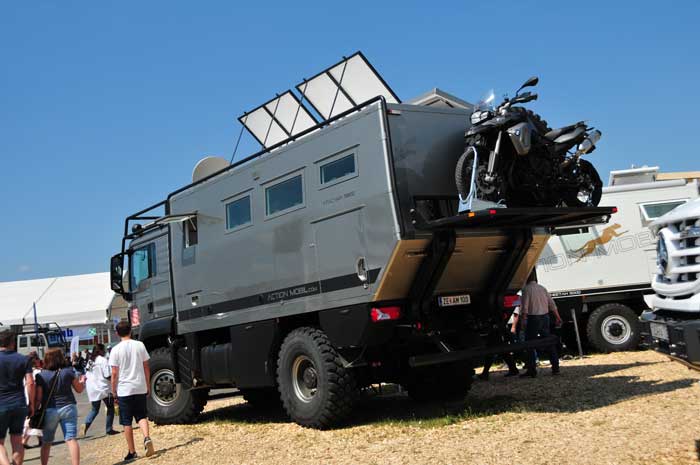 The exhibits range from 4x4 production vehicles to quads, ATVs (all-terrain vehicles), motorized two-wheelers and pickups, expedition vehicles, desert vehicles, RVs and trucks.