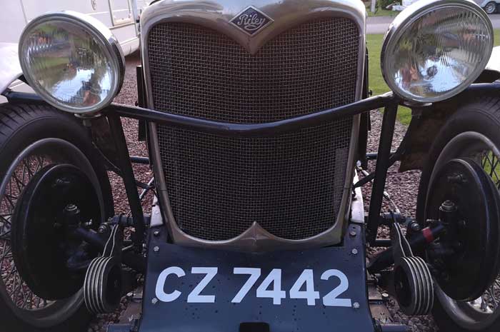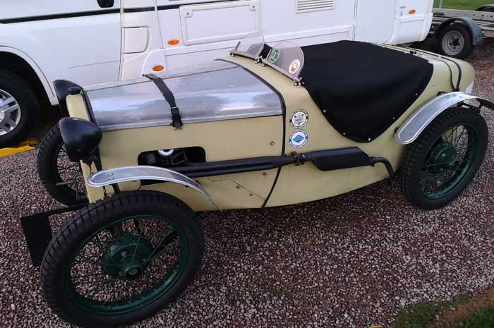 Historic racing cars at the campsite in Winchcombe