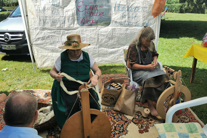 Let's take the ladies at the spinning wheel, who were able to spin yarn from different materials. Who can do that today?