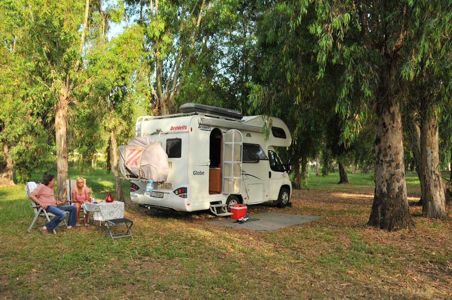 Since the private beach is very spacious, it is never too narrow even in midsummer on the camping area. Come and relax and unwind, whether on the beach under the palm trees, at your motor home or on the terrace of our restaurant.