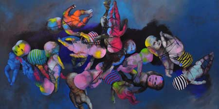 Conversely, she treats contemporary themes with baroque opulence and rococo sophistication.