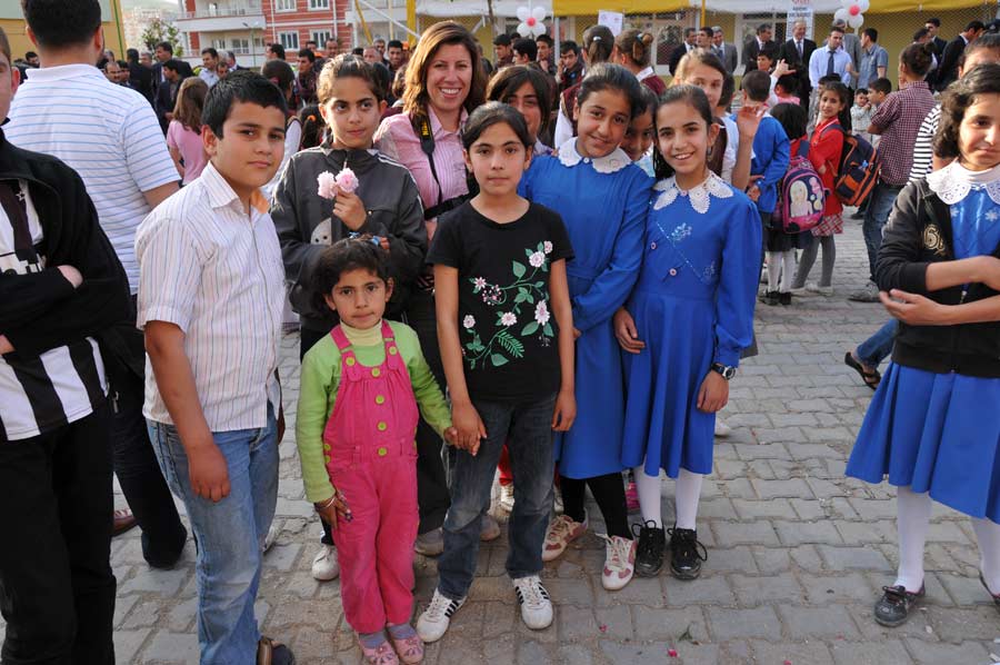 While we were waiting for the Sanliurfa Governor, Dear Nuri Okutan, who was going to attend for the opening, we had a conversation opportunity with the children that surrounded us, although we were strangers to them, we noticed that these children were quite eager to talk and learn, besides their eyes were shining with a desire of recognizing a stranger. We could see that behind a few questions that they asked us, there were thousands of questions in their minds. Nisa, whom I learnt her name later, did not speak much. She had dark and slanted eyes that draw me in when I looked at her. Even though we had to change places because of the crowd, whenever my eyes looked for her, she was there, at the right side of me. I have never been forgotten her sweet and humble smile, shy manners and beautiful eyes that look at me warmly.