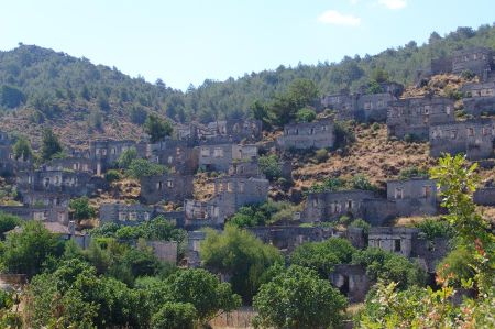 In the historic ruined village of Kayaköy, where another part of the film was shot at the time, ethnic Greeks lived in the majority until 1922/23, who later had to leave the Fethiye region in the so-called "population exchange" in fulfilment of the Treaty of Lausanne with Greece. After the expulsion of the Greek population, most of whom fled to Crete, ethnic Turks who had been expelled from Thessaloniki, among others, settled here, but they moved to the plain below the city as farmers. So the city lay completely fallow.