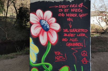 It was this quote, which is commonly and often attributed to Berthold Brecht, that we found among other graffiti under a car bridge in Weil and thus obliged us to do a little research.