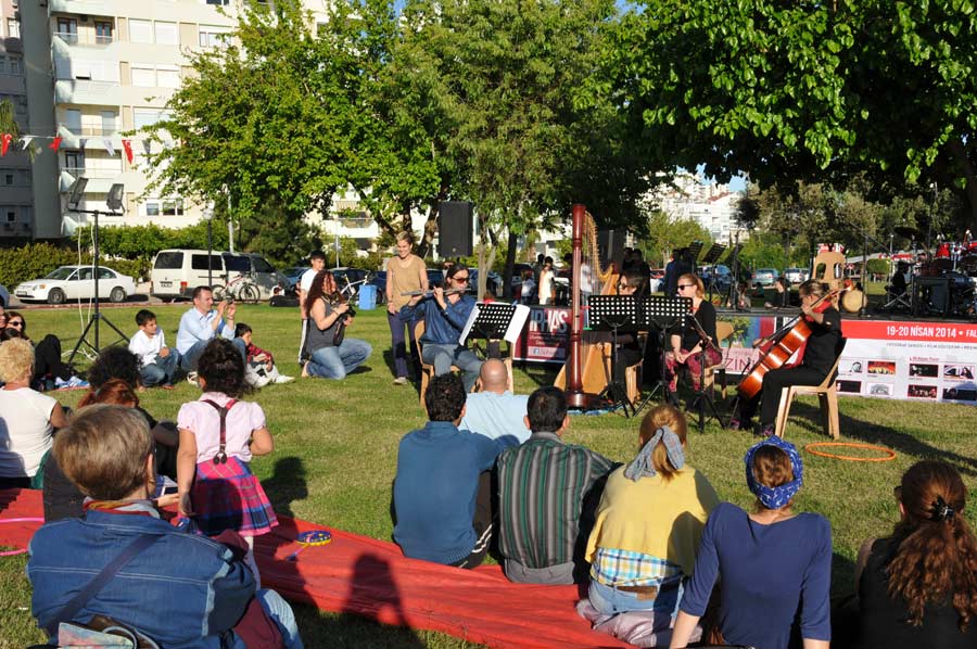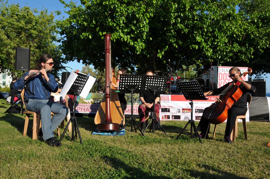 Within the context of our culture and intimacy journey along the Roman road project, we were precisely in the way of Murat. Consequently, we contacted through the internet and after an exchange of ideas, we decided how to integrate our caravan into the concept of the program, which is based on performing various music genres from different countries. We took part in the Friendship Concert that was planned to be organized in the Antalya Phaselis Antique City, but then the location was changed to Antalya Falez 2 Park.