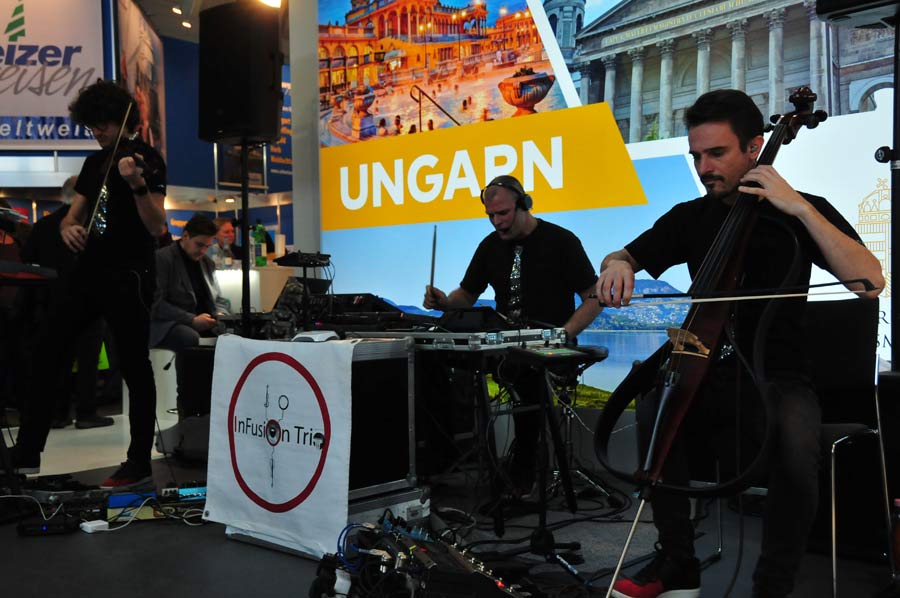 Very relaxed but lively, it was a music show, that impressed us at the booth of this year's partner country Hungary, so there were in addition to traditional folkloric dances some performances of modern electronic music, especially in the interpretation of the group InFusion Trio from Budapest.