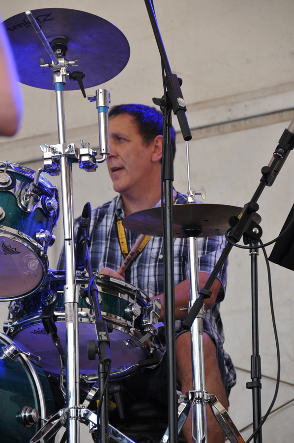 With the motto "Get your balls to the wall and your hair high, let's party hard!" the music world summer festival of the year 2012 took place again on the company premises. We drove into Augsburg at around 11:00 a.m., found a parking space on the extensive grounds immediately, so that we were there almost on time for the start of the summer festival. However, two up-and-coming school bands had already completed the start of the program. Now Alberto Menendez' top-class jazz-soul duo followed.