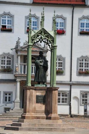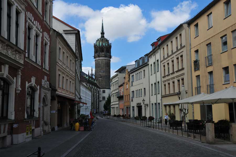The gaps in the streets began to close, just between the market and the city church a few places stayed. Between Collegiate and Mittelstraße smaller craft houses without backyards were created. For almost 40 years - from 1508, with a brief interruption, until 1546 - Luther lived in the Wittenberg hermit monastery. For the first time in his life, he was able to work on his ideas and unattended in his own even heated room in the tower room there. After the dissolution of the monastery and the marriage of Luther in 1525 Elector Friedrich III. gave the building to the reformer and his family.