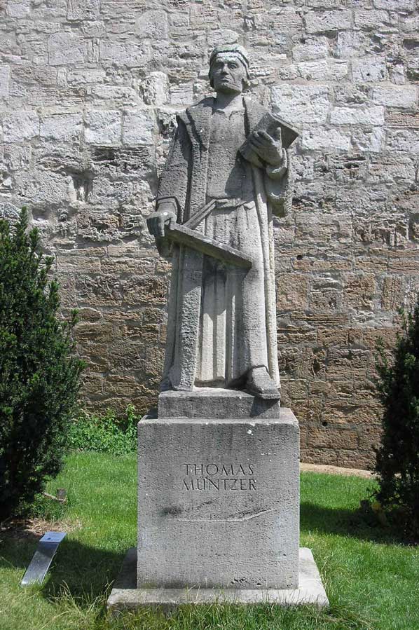 In contrast to Luther, Müntzer stood for the violent liberation of the peasants and was active in Mühlhausen / Thuringia, where he was priest in the Marienkirche, as an agitator and promoter of the uprisings.
