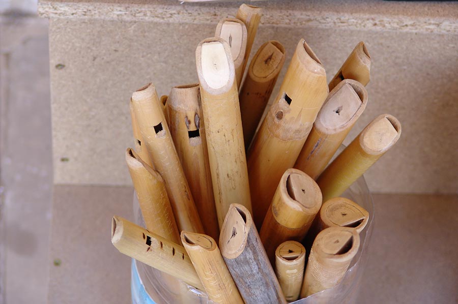 A wooden staircase, which is supported by the construction of the water storage tanks in the inner courtyard, leads to the second floor where all doors also open to a free interior space that, when covered, provides sufficient protection from the weather.
