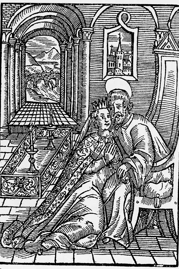According to the legend that led to the later canonization of John Nepomuk, his dispute with the king did not arise from the ecclesiastical political conflict, but from his refusal to break the secrecy of confession. Accordingly, the priest did not want to reveal to the king what his wife, whom Wenceslaus suspected of infidelity, had confided to him. That's why Wenzel tortured him and then had him fall from Prague's Charles Bridge into the water. This version of the martyrdom story was documented for the first time in the Liber Augustalis (“Imperial Chronicle”) by the Viennese chronicler Thomas Ebendorfer, written around 1450, who attests to its spread in 1433.