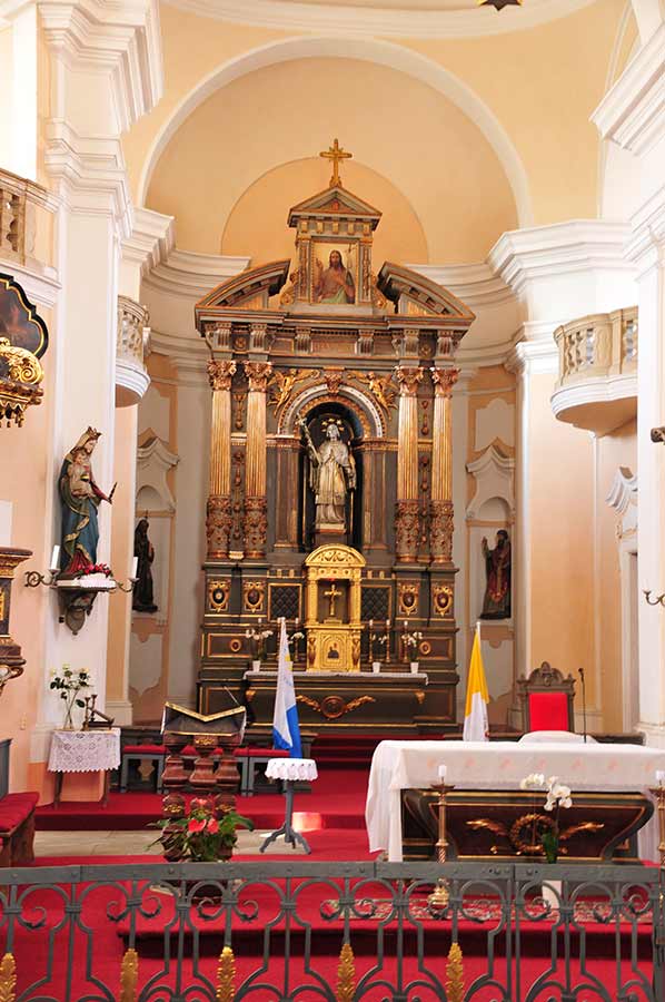The presbytery of the church was decorated with red marble. In 1780, a baroque church tower was added to replace the dilapidated bell tower on the sacristy.