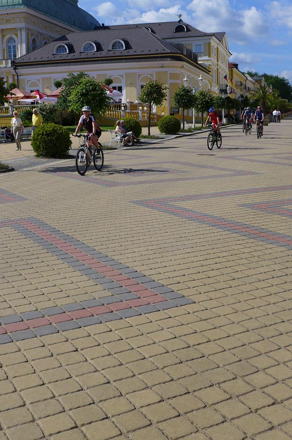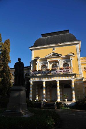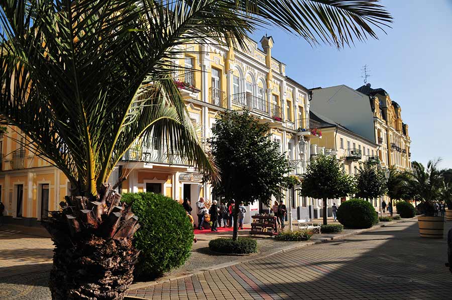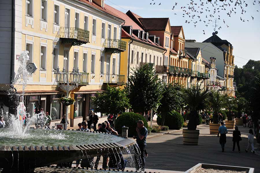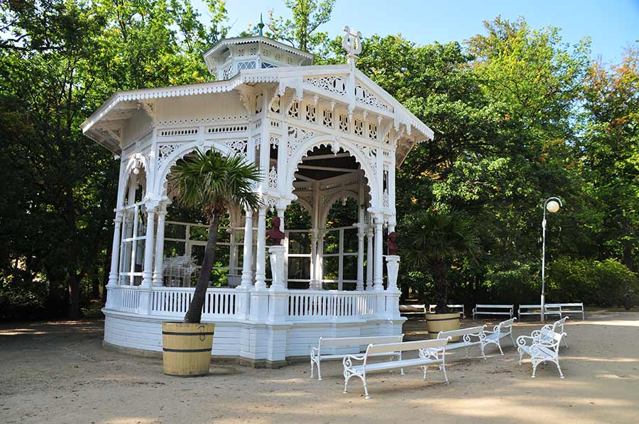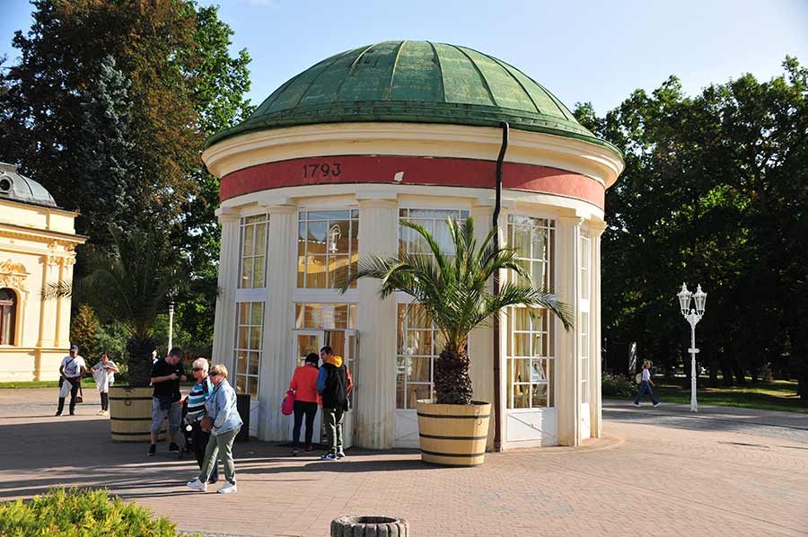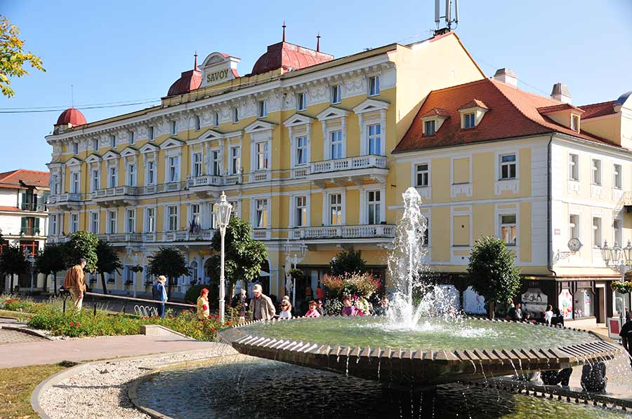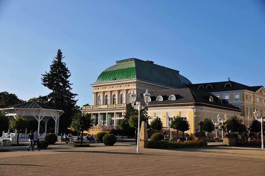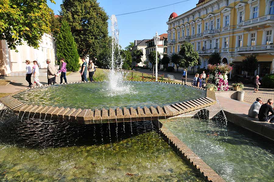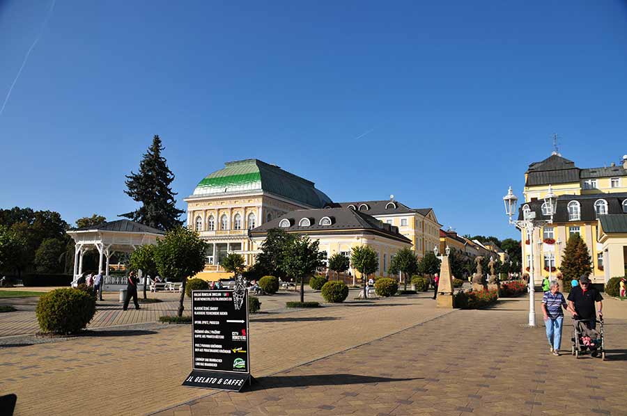 The spa district begins in the northern area of the city park at the Stanislaus Spring, where there is a monument in honour of the inventor of the Esperanto language, the Pole Ludwik Lejzer Zamenhof. To the east of it, the Kollárova boulevard with the Mozart, Beethoven and Esplanade bathhouses closes off the city park. What is striking is the large number of guests who visit the various buildings and their springs with their drinking cups in their hands.