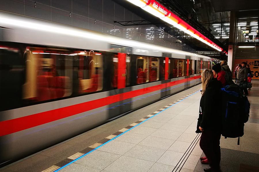 And since we wanted to adapt today's visiting destination from an ecological-sensible point of view, the use of the subway to get to the city center was also clear from our outset. Of course there were memories from the student days when Prague was an absolutely interesting destination for some studying trips, where just one subway line was available for its use at the time. We were also curious about this today.