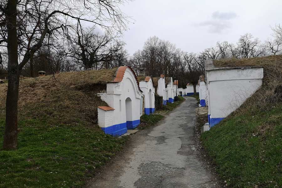 The wine cellars in Plže are already mentioned in the 15th century, later the underground "plže" served not just for the storage of wine but also as a shelter during the war. The site, whose name derives from the shape of the caves hollowed out in the soft yellow clay and consolidated with cap vaults, probably arose simultaneously with the creation of the vineyards. The buildings belong to the type of earthen cellar without pressing houses, whose function usually fulfills a rectangular space behind the bricked front. And the facades are the defining visual and aesthetic element of the cellars of Petrov. From the 16th century, they are built in a uniform style, with dominant architectural elements of Baroque shapes with a curving arch over the arched entrance to the cellar. White limestone facades with underlays and oak doors underline even more the aesthetic effect. In the cellars, where the blue color of the underpinning on the side wall is replaced by red, there is not just good wine but also a girl to marry.