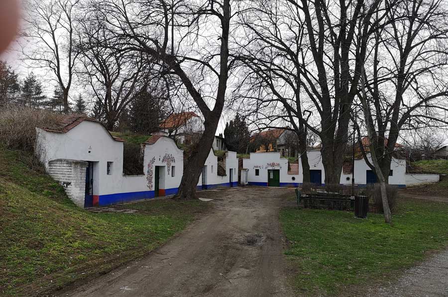 The length of the cellar is between 10.00 and 17.00 meters. The thick layer of loam over the vaults provides a favorable climate, which is so important for the winemaking process. In the antechamber the grapes are processed and table and benches for the cozy get-together of the winemaker and his guests for a glass of wine are not missing. The complex of wine cellars, as preserved at the beginning of the 3rd millennium, is accompanied by 63 buildings of various ages. We see three main roads in the area, which are surrounded by these wine cellars radiate and thus form a village square. The design of the basement in a semicircular system forms an entrance to the grounds as well as the confluence with the central village square, which serves for events of various social and festive gatherings.