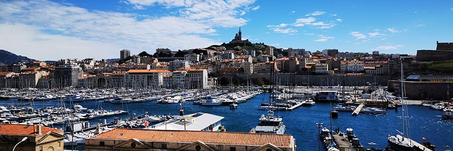 South of the city center is the Notre-Dame de la Garde, designed by Henri-Jacques Espérandieu in the neo-Byzantine style and built between 1853 and 1864 on the site of a medieval pilgrimage chapel. It is located on a 147 m high limestone cliff and, along with the Château d'If in front of the harbor, is the landmark of Marseille. “La Bonne Mère”, as it is popularly known, contains a monumental collection of votive images. The viewing platforms offer a spectacular view of the city.
