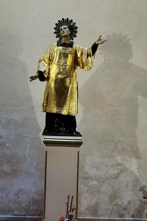 Only two statues made of painted and partly gilded wood from the late 18th century show the Mother of God and Saint Laurent. The church also contains a large number of numbered floor slabs which were originally gravestones.