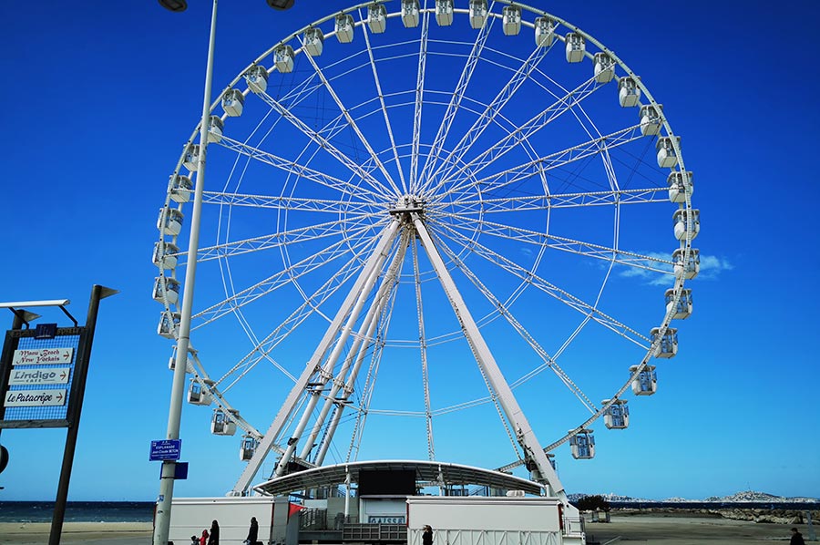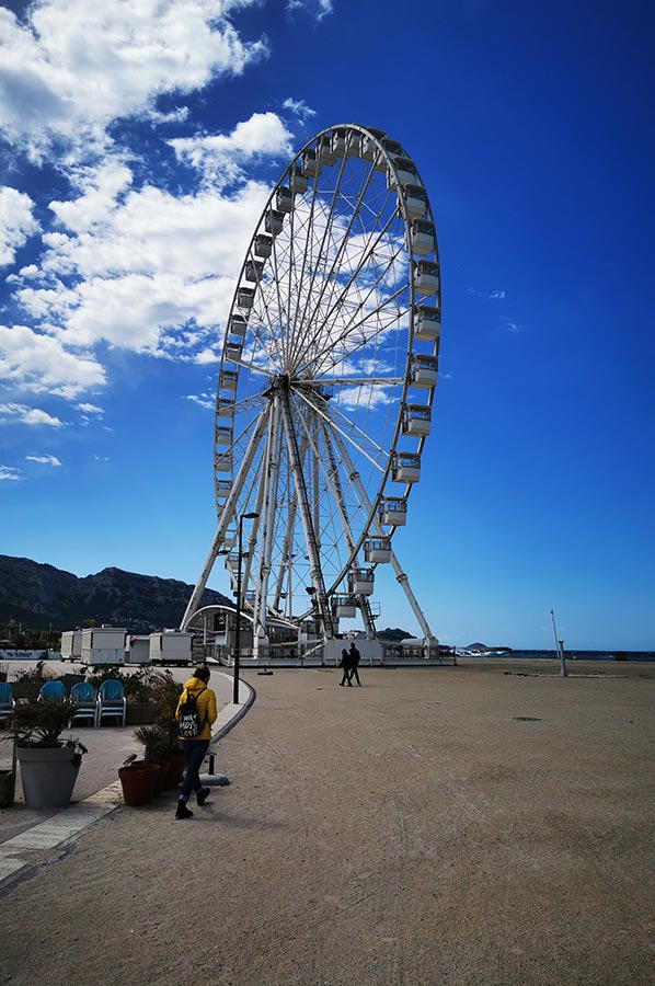 If you want to turn your day at the beach into a longer day trip, you can also head further towards Plage Borély, where a Ferris wheel runs its rounds until late into the night.