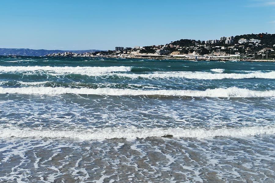 The Plage du Prado is 20 minutes by bus south of the old port of Marseille and we also used the bus line 83, which is available there every half hour, despite the strong mistral that could already be felt at the port of Port Vieux. In summer there is also a boat from Prado to Port Vieux once an hour.