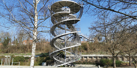Our research during our visit to Weil am Rhein also revealed that there has been an interesting viewing tower in the park area on the border of Weil and Basel since the state garden show "Grün 99", which understandably immediately aroused our interest.