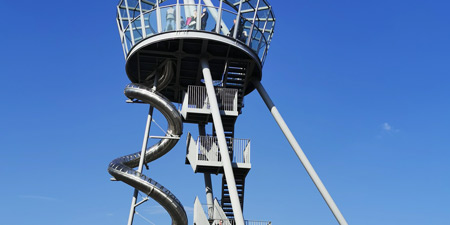 The further tour after visiting the chair museum then brought us to the Vitra slide tower, also known as the Vitra Slide Tower, a 30.74 meter high observation and slide tower and thus another work of art experience in Weil am Rhein, which magically attracts children in particular.