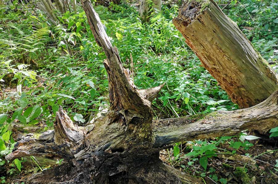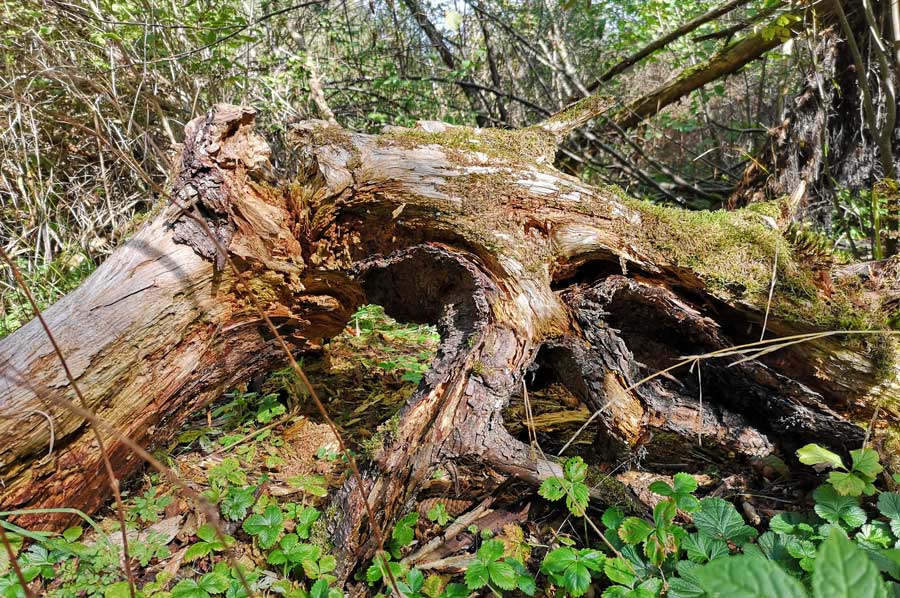After the ice pond lost its function as an ice supplier, it was reforested with spruce trees. However, pure spruce stands are not adapted to the living conditions in the bog and are therefore susceptible to diseases and pests. In the meantime, nature is allowed to run its course. After the spruce fell, a mixed forest, adapted to the living conditions, settled on the area, which is an interesting, diverse habitat for many animals. Typical woods are downy birch and pine, spruce, mountain ash and various types of willow. The dead trees in particular provide food and shelter for many specialized animals and plants. The trees stand on moorland - a result of the siltation of the post-glacial Federsee. This is why visitors can experience an extraordinary phenomenon here: the soft floor cushions with every step.