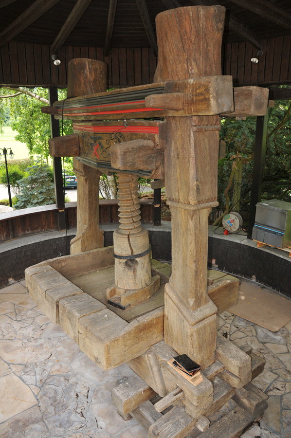Depending on the region, different terms are used for the wine press, so in some places one hears the terms Torkel or Torggel, which were derived from the Middle Latin words torcula or torculum. For centuries, the mash, as the fruit pressed with foot force is called, was pounded in large vats with a drain. The Romans already used wooden lever presses which were called wine presses or tree presses.