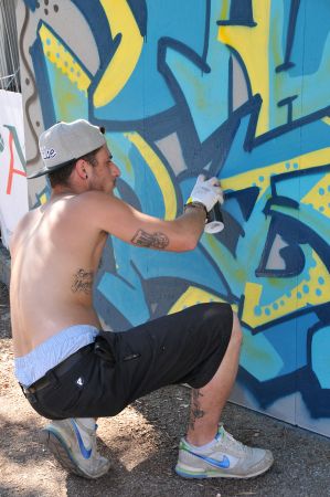 After the end of this performance, our path first led to "Art without Limits" in the Apparatehaus, where students from the Linz Art University are guests at the Kulturpark, then on to the Grafitti Battle, where quite professional graffiti sprayers presented their art on wall surfaces.