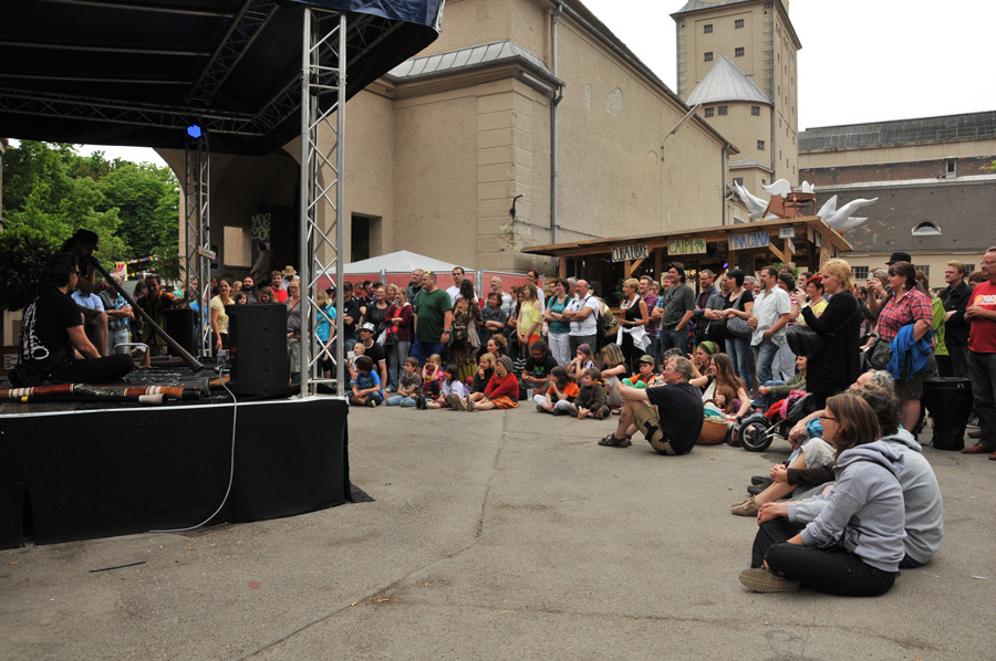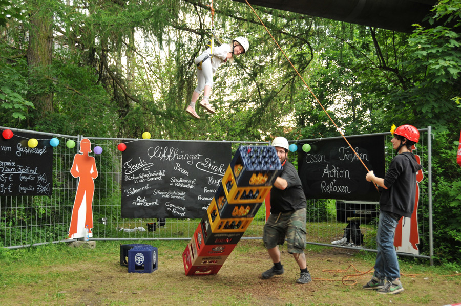 In addition to the music, there are a variety of performances and events, ranging from an Austrian fire show (Fenfire) to abseiling from the 80 meter high gas works.