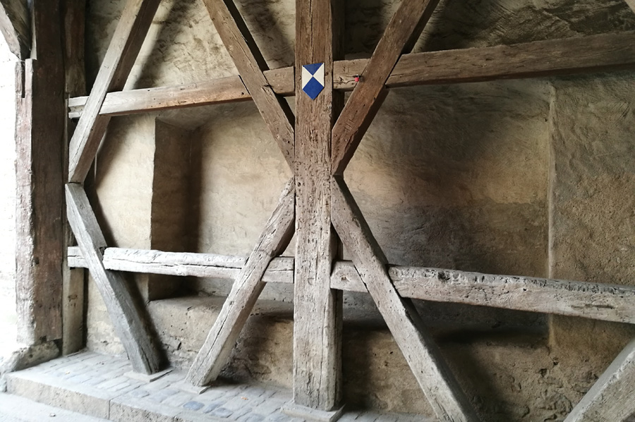 An important east-west connection, the "Alte Reichsstrasse", led through Mainbernheim. It was a long distance trade route from Nuremberg to Frankfurt and the continuation of the "golden road" from Prague to Nuremberg. Two large gate towers protected the entrances. At dawn the city guards opened the city gates. The whole day they watched at the gates and on the defense towers. Every vehicle had to pass the bottom gate or the upper gate, every pedestrian, every rider too. The foreign merchant, who wanted to enter the city with his goods, was stopped here and searched for weapons. These had to be handed over. In the city mostly peace ruled and disputes were settled by a court. After the merchant had paid duty for his goods, he was allowed to stay in the city. Thick, high walls provided shelter and safety for their goods and trade. Night watchmen walked with lanterns through the streets to deter thieves. The devices for the fall bridge at the upper gate as well as the holders of the heavy wooden doors, which were closed in the evening, are still clearly visible. Who came too late, had to stay in a hostel in front of the gate. Even on the road the passengers were protected, for example, at the highest point of today's B 8, Mainbernheimer took over the escort protection of the dealers from Kitzingen citizens. For the safe escort the companions were paid.