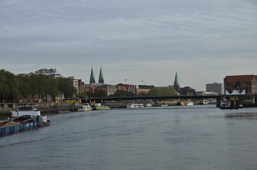 We passed the well-known Pannekoekschip "Admiral Nelson", the Weserburg, which today houses the Museum of Modern Art, drove under the Stephanie Bridge, then along the Downtown Terraces and finally reached the commercial ports, including the well-known timber port where the import timber was loaded be landed by rail or truck or for further processing in local companies.